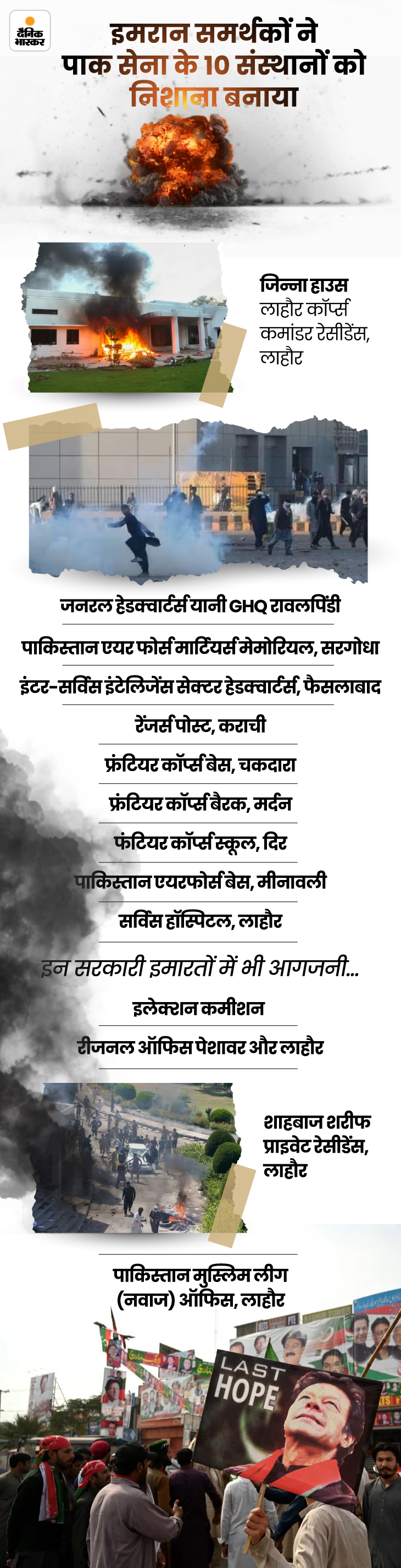 सिविल वॉर की तरफ बढ़ता पाकिस्तान VIDEO:सबसे बड़ा राज्य पंजाब फौज के हवाले, हर शहर में हिंसा-आगजनी, एक हजार PTI वर्कर्स गिरफ्तार