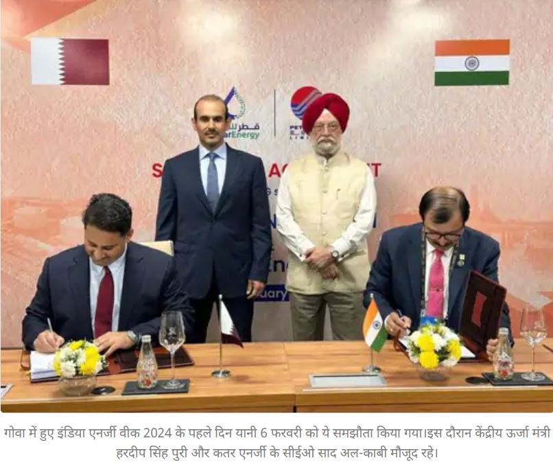 यह समझौता अगले 20 सालों के लिए हुआ है और इसकी कुल लागत 78 अरब डॉलर की है। भारत की सबसे बड़ी LNG आयात करने वाली कंपनी पेट्रोनेट एलएनजी लिमिटेड (PLL) ने कतर की सरकारी कंपनी कतर एनर्जी के साथ ये समझौता किया है। इस समझौते के तहत कतर हर साल भारत को 7.5 मिलियन टन गैस एक्सपोर्ट करेगा। इस गैस का इस्तेमाल बिजली, फर्टिलाइजर बनाने और इसे CNG में बदलने के लिए किया जाता है।