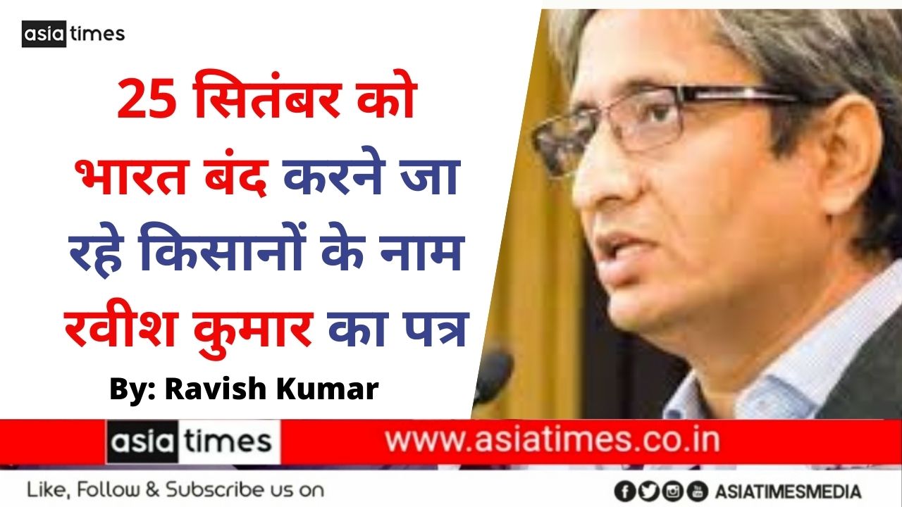 25 सितंबर को भारत बंद करने जा रहे किसानों के नाम रवीश कुमार का पत्र
