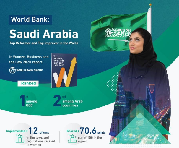 RIYADH —(SG) The Kingdom of Saudi Arabia has realized a remarkable leap in the World Bank’s Women, Business and the Law 2020 report, with a score of 70.6 out of 100.