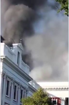 दक्षिण अफ्रीका के केपटाउन में स्थित संसद भवन में आग लग गई है। दमकल विभाग की 35 गाड़ियां मौके पर पहुंच गई है और फायरफाइटर्स आग बुझाने में लगे हुए हैं। आग लगने की वजह से संसद के कई हिस्से जलकर खाक होने की आशंका है। स्थानीय समयानुसार, आज सुबह करीब 5 बजे हाउस ऑफ पार्लियामेंट में आग लगी।